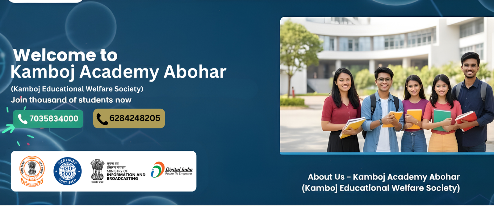 Kamboj Academy* was established in *2020* in *Abohar, serving students from **Azimgarh and nearby areas* with a vision to provide quality education, guidance, and skill development opportunities.
